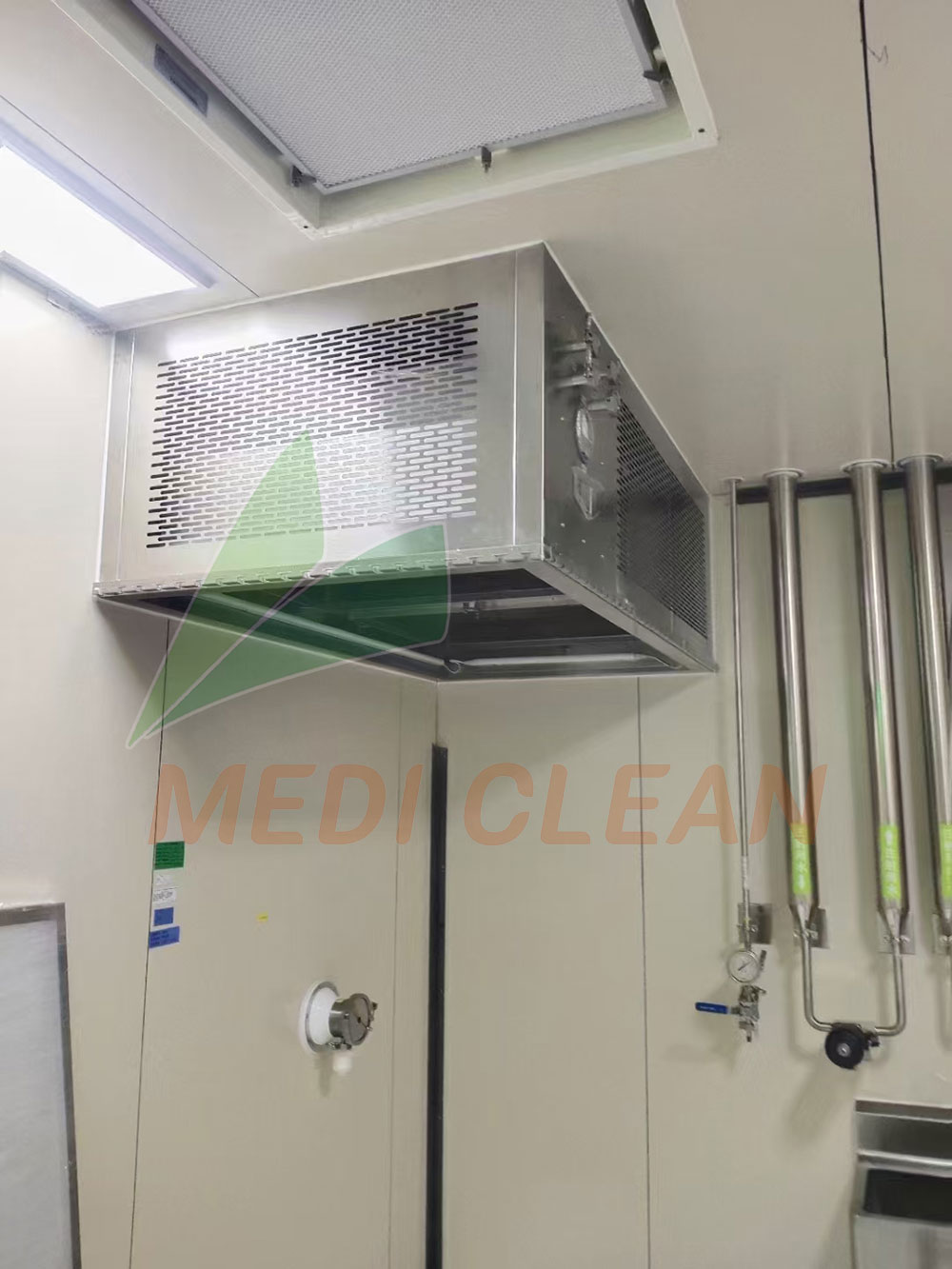 MD-CA-A型FFU式层流罩是一种自带FFU风机过滤器单元,配备有模块化的干式密封高效过滤器的百级层流罩。其依照铝合金型材作为骨架,可以实现模块化的吊装,并可采用多样的进风方式。在控制方面可以进行调速控制或集成PLC控制。该系统可以达到负压密封的要求,符合GMP2010要求,方便进行PAO检测和高效过滤器的更换。